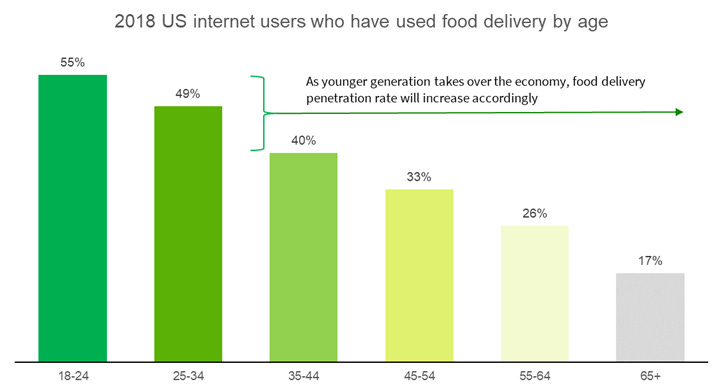This was in 2018. The proportion of customers in each cohort that have used a food delivery app has likely increased now, in light of the pandemic.